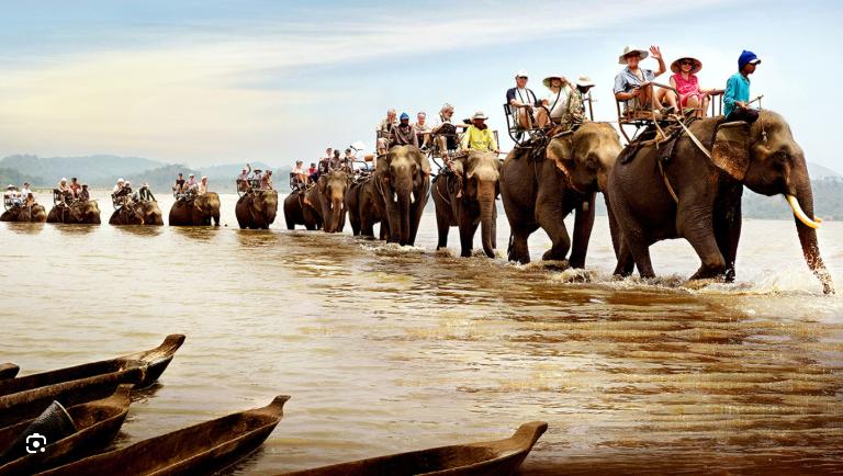 Ngày 2: Đi Buôn Đôn – cưỡi voi – vượt cầu treo – tham quan nhà sàn cổ – trở về nghỉ ngơi