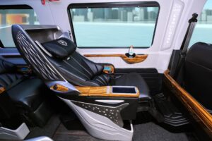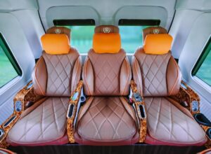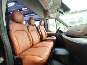 Tất cả chi tiết đều được hoàn thiện thủ công bởi đội ngũ nghệ nhân lành nghề, đảm bảo sự chính xác, tinh xảo và độ bền lâu dài. Với dịch vụ cá nhân hóa này, Ford Transit Limousine không chỉ là phương tiện di chuyển, mà còn là tuyên ngôn phong cách riêng biệt, độc nhất vô nhị của từng khách hàng.