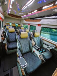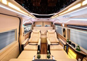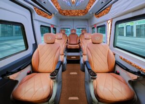 👉 Trả lời: Có! DCar Limousine cung cấp dịch vụ cá nhân hóa Ford Transit Limousine, cho phép khách hàng tùy chọn màu da ghế, ốp gỗ, màu vách trần, khắc logo hoặc tên riêng trên xe, tạo dấu ấn độc quyền