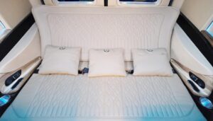 • Ghế limousine Business Class: rộng rãi, form ghế uốn lượn theo vóc dáng người châu Á, bọc da thật thân thiện làn da.
