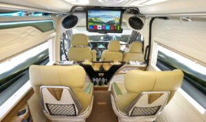 Thuê xe DCar vip Lounge với ghế xoay 180 độ, phòng họp di động