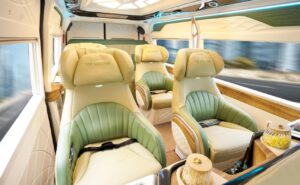 Với khả năng cá nhân hoá linh hoạt – từ màu ghế, chất liệu da, ốp gỗ, đến hệ thống đèn trần và trang trí nội thất – Ford Transit Limousine cũng là lựa chọn tuyệt vời cho những gia đình thượng lưu muốn sở hữu một “ngôi nhà di động” vừa sang trọng, vừa thoải mái.