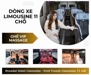 Khám phá chi tiết các dòng xe Limousine 11 chỗ của DCar như Solati Limousine, Transit Limousine với thiết kế hạng sang, ghế massage và tiện nghi cao cấp, phù hợp với doanh nghiệp, nhà...