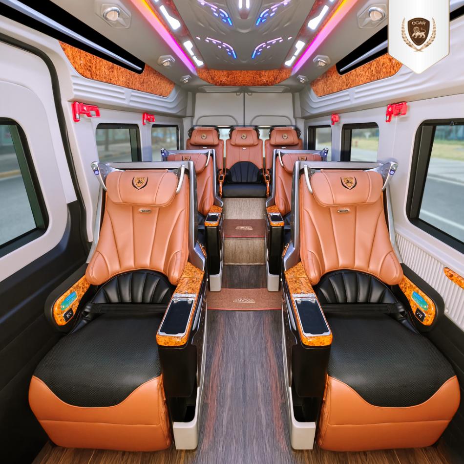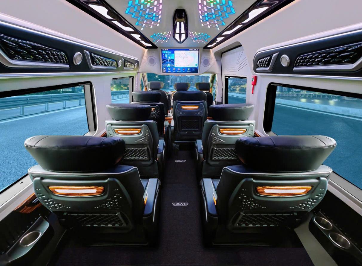 Không gian xe rộng rãi với thiết kế ghế riêng biệt, mang đến sự riêng tư và thoải mái tối đa cho từng hành khách.